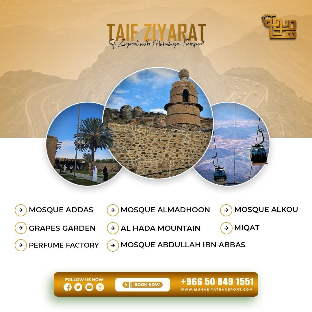 Hotel InterCity Transfers, Taif Tour’s & SightseeingMuhabiya Transport offers a convenient transfer service from Makkah hotel to Madinah (Via-Taif). This service ensures a comfortable and hassle-free journey for pilgrims and travelers, allowing you to focus on your spiritual experience.